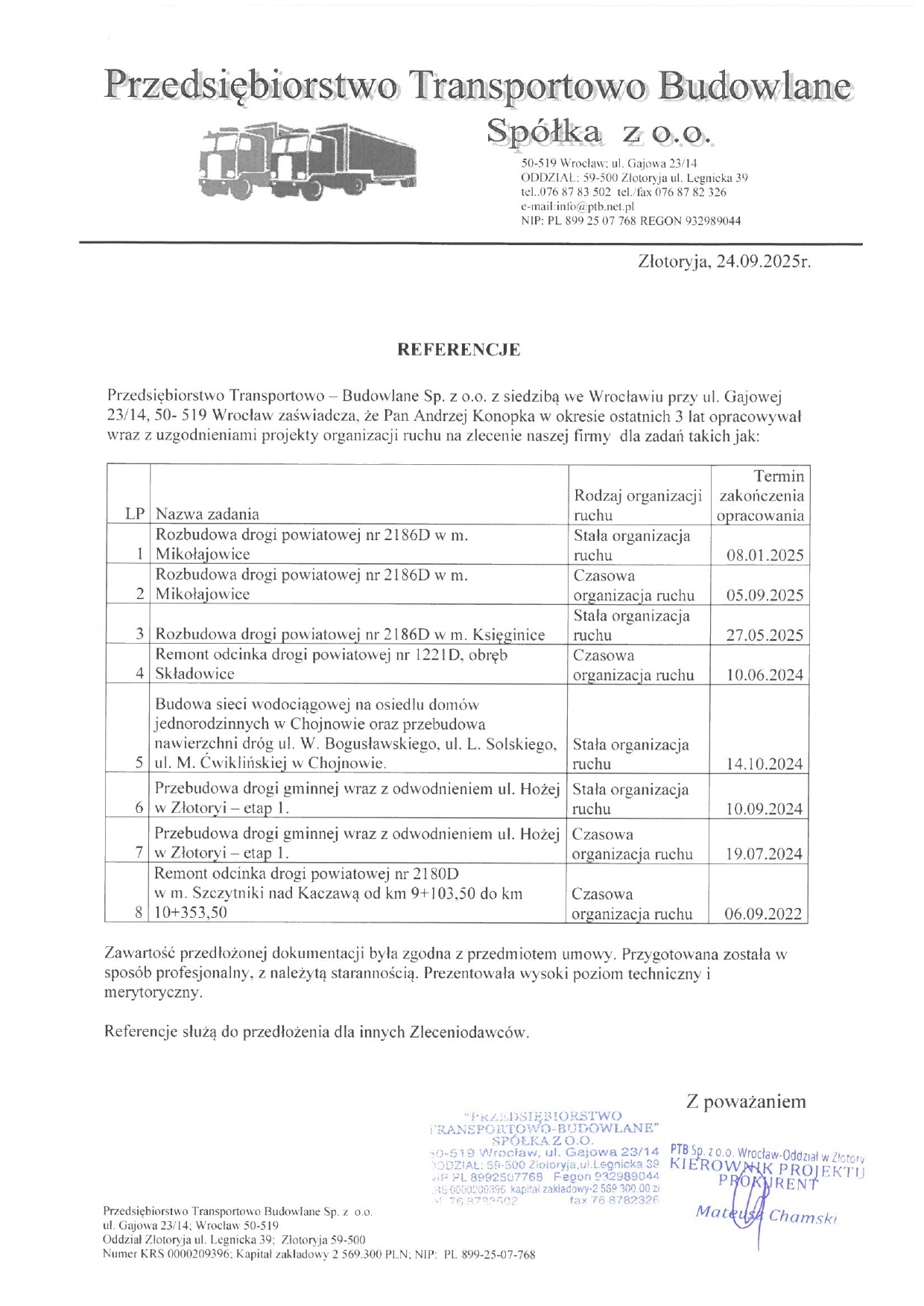 Zaufanie naszych partnerów to najlepsze potwierdzenie jakości i rzetelności naszych usług. Współpracujemy z wiodącymi firmami budowlanymi, jednostkami samorządowymi oraz inwestorami prywatnymi, realizując projekty o kluczowym znaczeniu dla rozwoju infrastruktury. Nasze doświadczenie obejmuje zarówno złożone inwestycje drogowe i mostowe, jak i inwestycje dla drobnych indywidualnych inwestorów. Każda realizacja stanowi dowód naszej odpowiedzialności, terminowości i wysokich kompetencji inżynierskich. Dziękujemy naszym klientom za zaufanie – to dzięki wspólnym projektom tworzymy trwałe rozwiązania, które służą kolejnym pokoleniom.