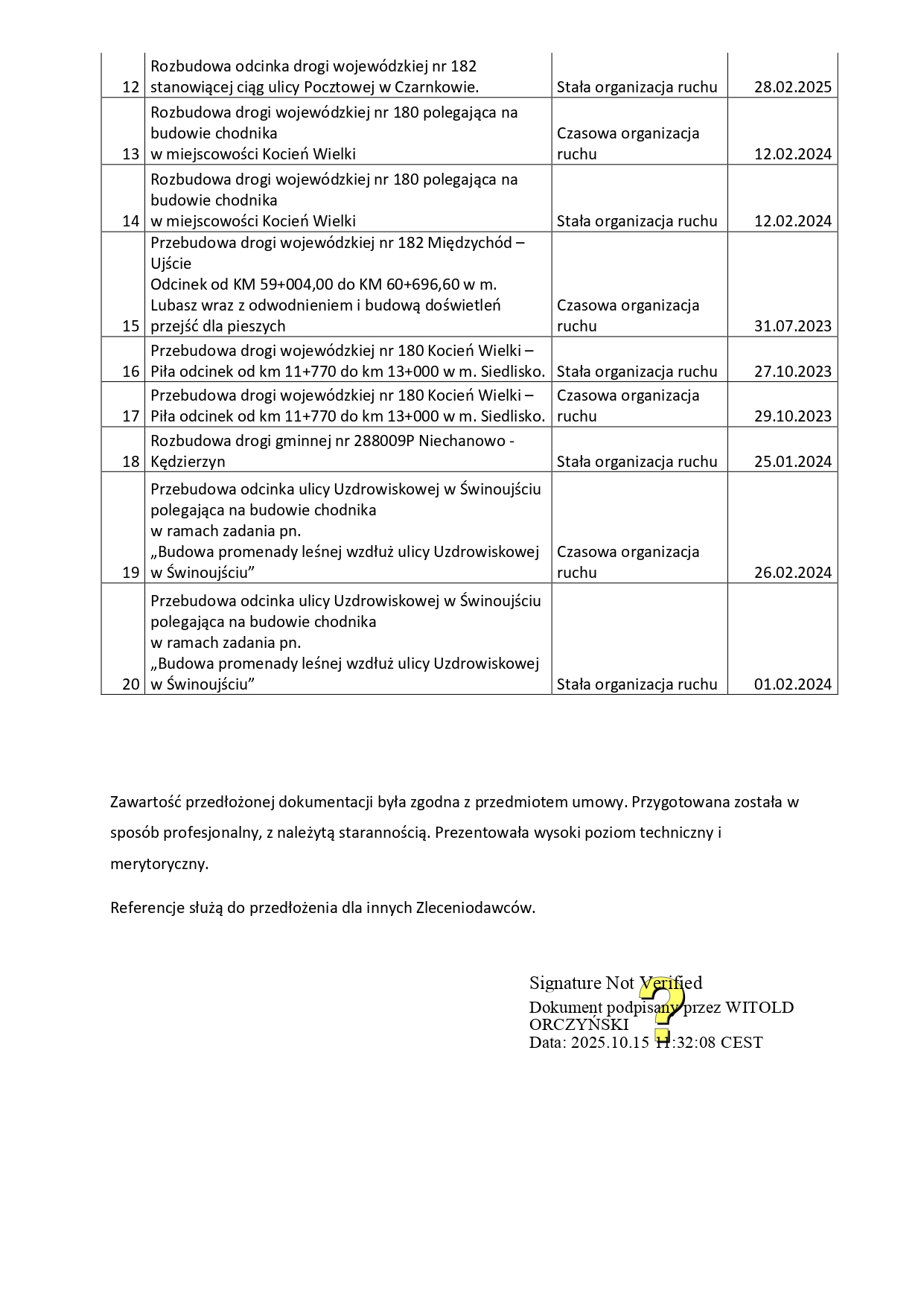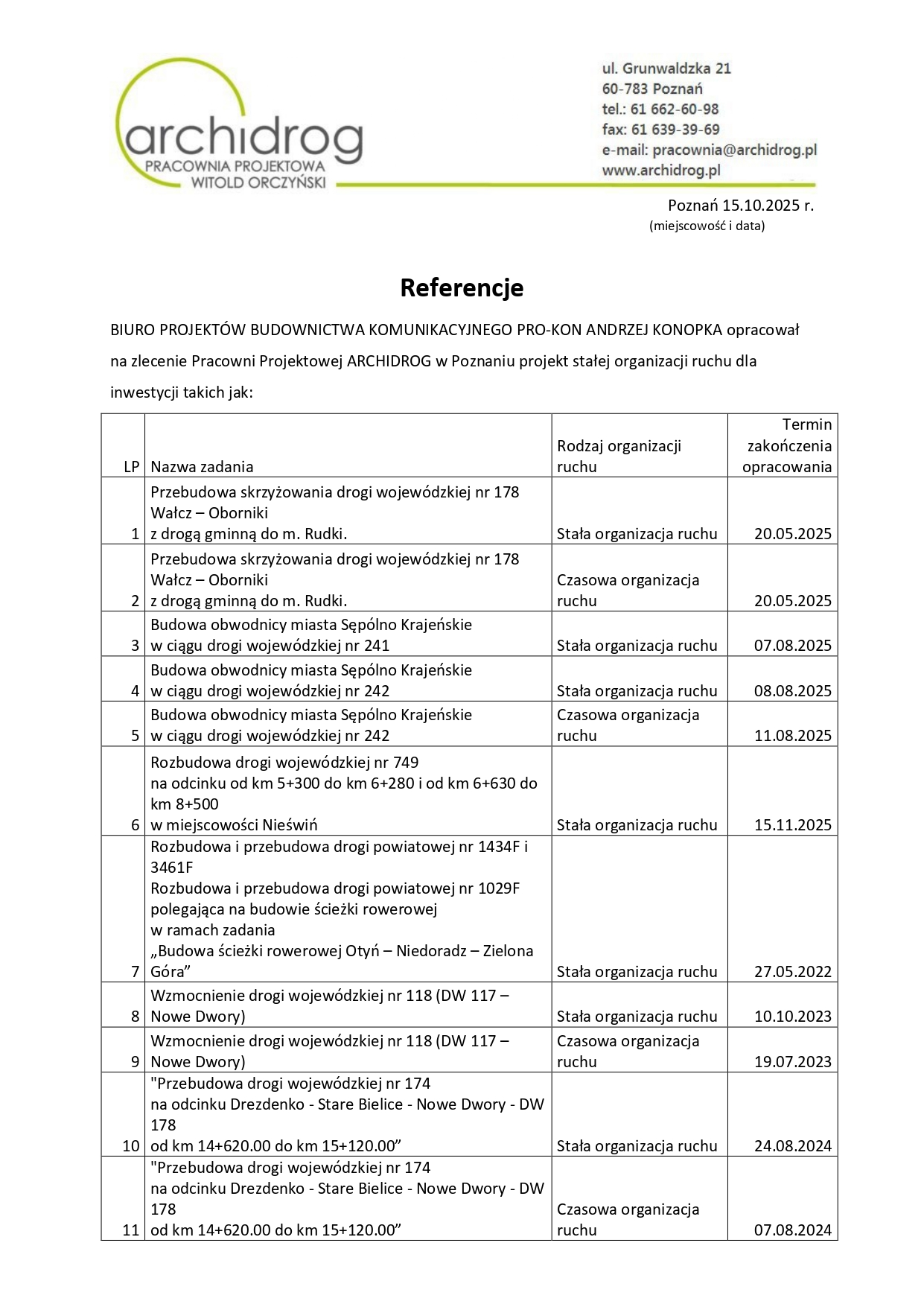 Zaufanie naszych partnerów to najlepsze potwierdzenie jakości i rzetelności naszych usług. Współpracujemy z wiodącymi firmami budowlanymi, jednostkami samorządowymi oraz inwestorami prywatnymi, realizując projekty o kluczowym znaczeniu dla rozwoju infrastruktury. Nasze doświadczenie obejmuje zarówno złożone inwestycje drogowe i mostowe, jak i nowoczesne obiekty kubaturowe. Każda realizacja stanowi dowód naszej odpowiedzialności, terminowości i wysokich kompetencji inżynierskich. Dziękujemy naszym klientom za zaufanie – to dzięki wspólnym projektom tworzymy trwałe rozwiązania, które służą kolejnym pokoleniom.